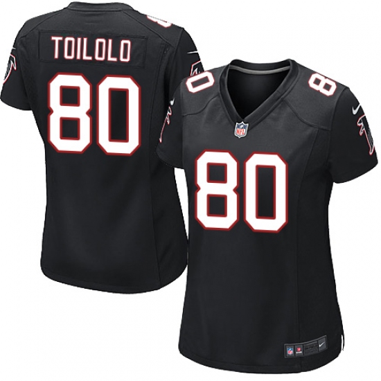 Home>NFL>Atlanta Falcons>Levine Toilolo>Women's Nike Atlanta Falcons #80 Levine Toilolo Game Black Alternate NFL Jersey