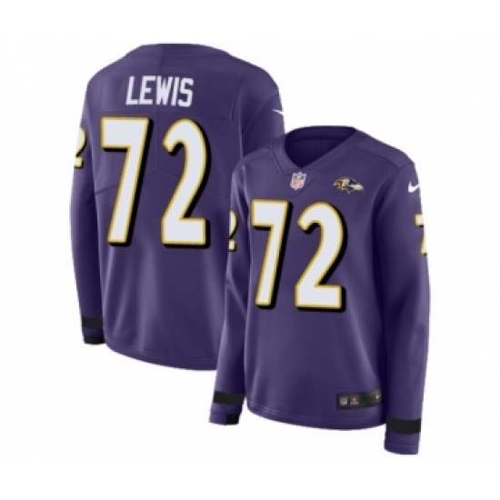 >Women's Nike Baltimore Ravens #72 Alex Lewis Limited Purple Therma Long Sleeve NFL Jersey