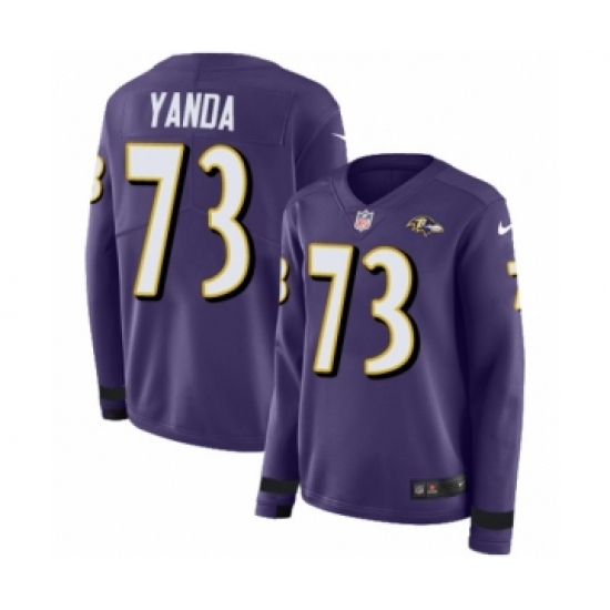 >Women's Nike Baltimore Ravens #73 Marshal Yanda Limited Purple Therma Long Sleeve NFL Jersey