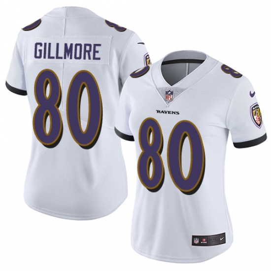 Women's Nike Baltimore Ravens #80 Crockett Gillmore White Vapor Untouchable Limited Player NFL Jersey