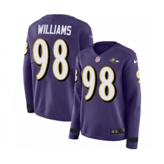 >Women's Nike Baltimore Ravens #98 Brandon Williams Limited Purple Therma Long Sleeve NFL Jersey