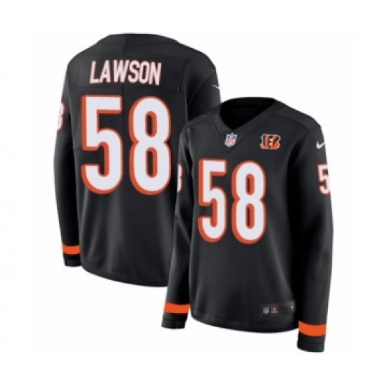 >Women's Nike Cincinnati Bengals #58 Carl Lawson Limited Black Therma Long Sleeve NFL Jersey