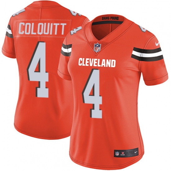 Home>NFL>Cleveland Browns>Britton Colquitt>Women's Nike Cleveland Browns #4 Britton Colquitt Orange Alternate Vapor Untouchable Limited Player NFL Jersey