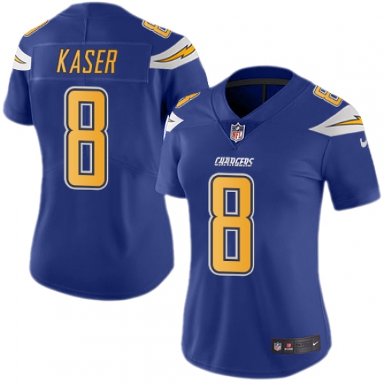 Home>NFL>Los Angeles Chargers>Drew Kaser>Women's Nike Los Angeles Chargers #8 Drew Kaser Limited Electric Blue Rush Vapor Untouchable NFL Jersey