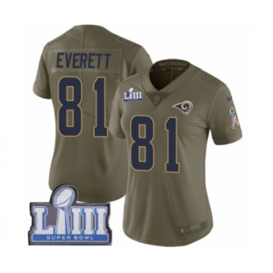 Women's Nike Los Angeles Rams #81 Gerald Everett Limited Olive 2017 Salute to Service Super Bowl LIII Bound NFL Jersey