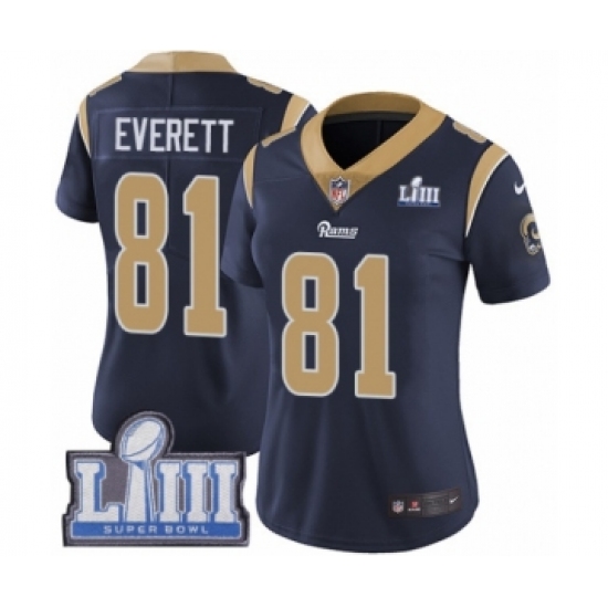 >Women's Nike Los Angeles Rams #81 Gerald Everett Navy Blue Team Color Vapor Untouchable Limited Player Super Bowl LIII Bound NFL Jersey
