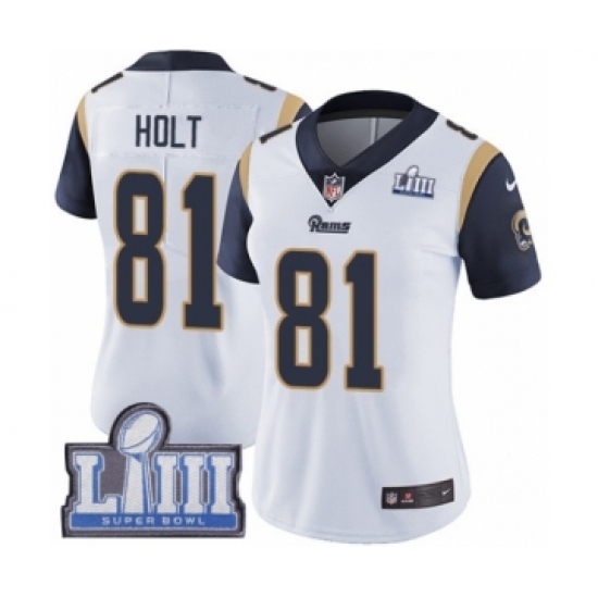 Women's Nike Los Angeles Rams #81 Torry Holt White Vapor Untouchable Limited Player Super Bowl LIII Bound NFL Jersey