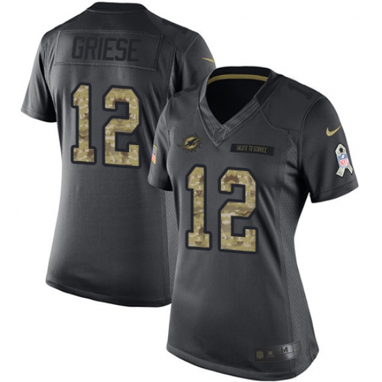 Home>NFL>Miami Dolphins>Bob Griese>Women's Nike Miami Dolphins #12 Bob Griese Limited Black 2016 Salute to Service NFL Jersey