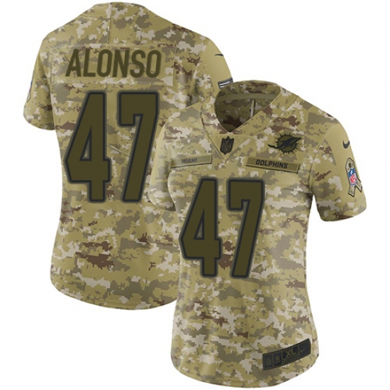 >Women's Nike Miami Dolphins #47 Kiko Alonso Limited Camo 2018 Salute to Service NFL Jersey
