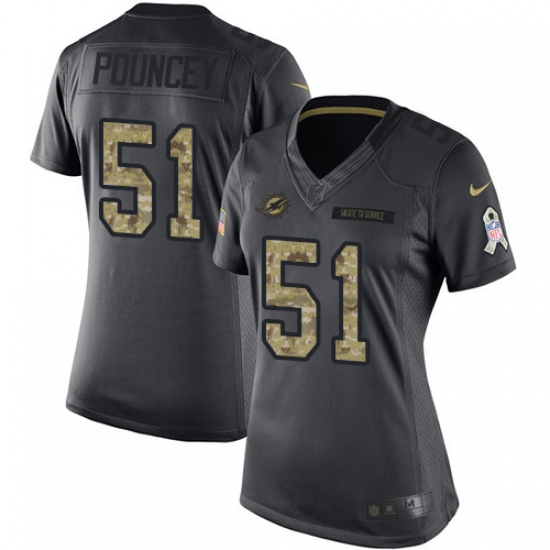 Women's Nike Miami Dolphins #51 Mike Pouncey Limited Black 2016 Salute to Service NFL Jersey