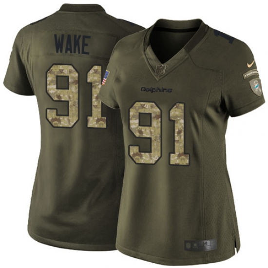 Women's Nike Miami Dolphins #91 Cameron Wake Elite Green Salute to Service NFL Jersey