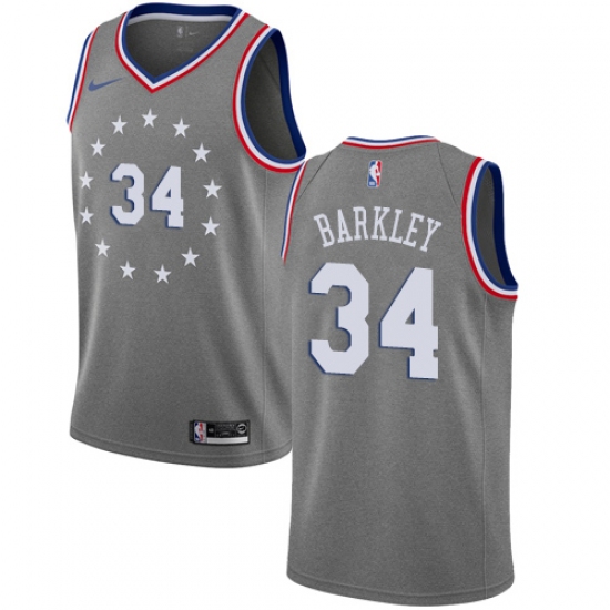 >Women's Nike Philadelphia 76ers #34 Charles Barkley Swingman Gray NBA Jersey - City Edition
