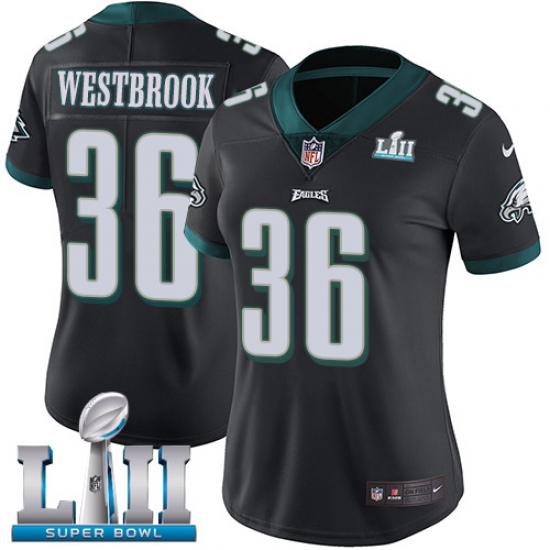 >Women's Nike Philadelphia Eagles #36 Brian Westbrook Black Alternate Vapor Untouchable Limited Player Super Bowl LII NFL Jersey