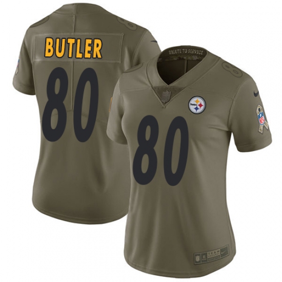 Home>NFL>Pittsburgh Steelers>Jack Butler>Women's Nike Pittsburgh Steelers #80 Jack Butler Limited Olive 2017 Salute to Service NFL Jersey