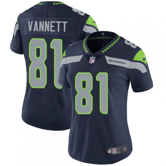 Home>NFL>Seattle Seahawks>Nick Vannett>Women's Nike Seattle Seahawks #81 Nick Vannett Steel Blue Team Color Vapor Untouchable Limited Player NFL Jersey