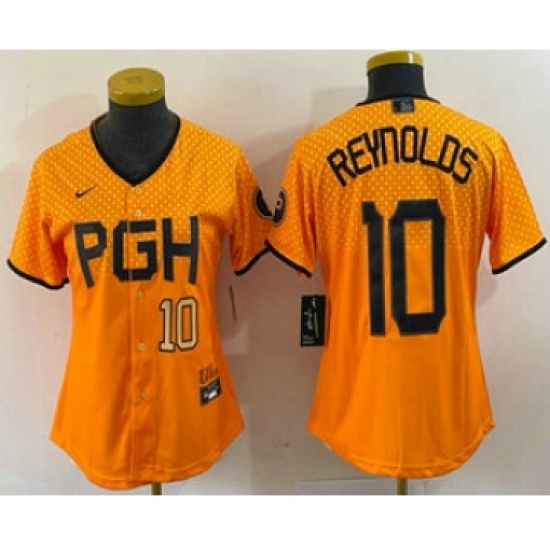 Women's Pittsburgh Pirates #10 Bryan Reynolds Yellowd 2023 City Connect Stitched Jersey 1