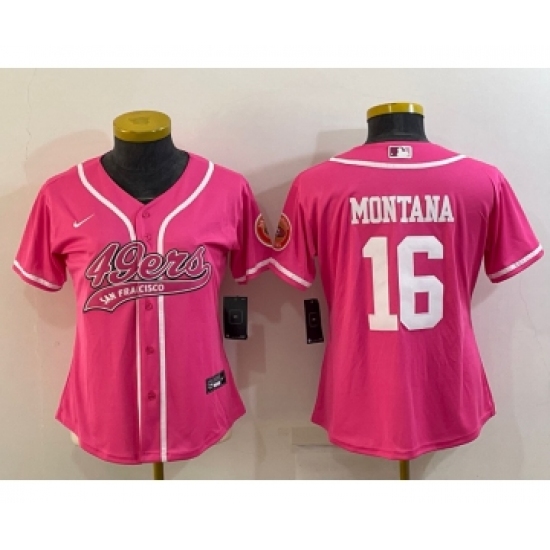 Women's San Francisco 49ers #16 Joe Montana Pink With Patch Cool Base Stitched Baseball Jersey