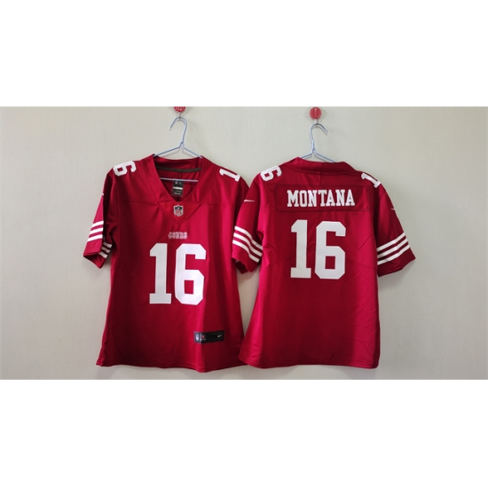 Women's San Francisco 49ers #16 Joe Montana Red Vapor Football Stitched Jersey(Run Small)