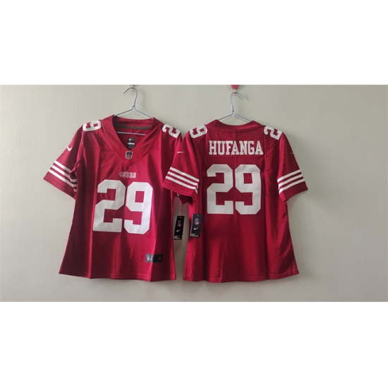 >Women's San Francisco 49ers #29 Talanoa Hufanga Red Vapor Football Stitched Jersey(Run Small)