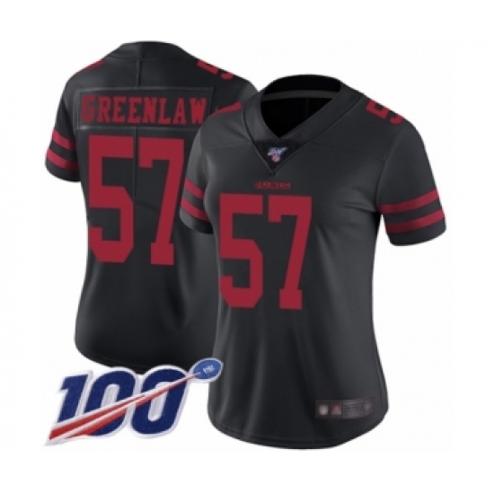 >Women's San Francisco 49ers #57 Dre Greenlaw Black Vapor Untouchable Limited Player 100th Season Football Jersey