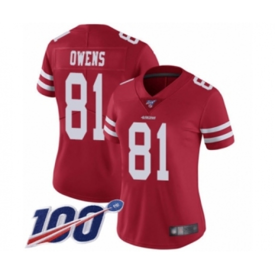 >Women's San Francisco 49ers #81 Terrell Owens Red Team Color Vapor Untouchable Limited Player 100th Season Football Jersey