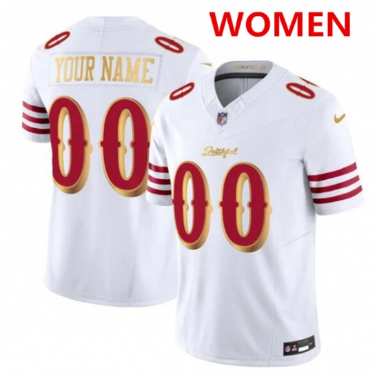 Women's San Francisco 49ers ACTIVE PLAYER Custom White Gold 2025 F.U.S.E. “Rivalries” Vapor Limited Football Stitched Jersey(Run Small)