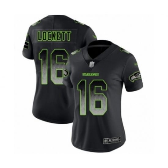 Women's Seattle Seahawks #16 Tyler Lockett Limited Black Smoke Fashion Football Jersey