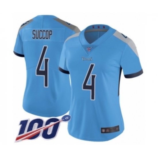 Women's Tennessee Titans #4 Ryan Succop Light Blue Alternate Vapor Untouchable Limited Player 100th Season Football Jersey