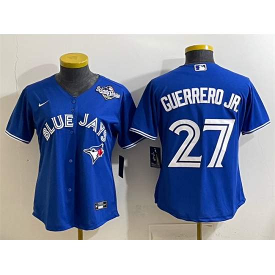Women's Toronto Blue Jays #27 Vladimir Guerrero Jr. Blue 2025 World Series Cool Base Stitched Baseball Jersey(Run Small)
