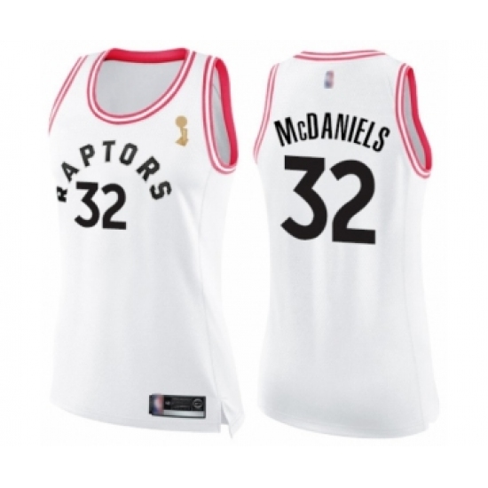 >Women's Toronto Raptors #32 KJ McDaniels Swingman White Pink Fashion 2019 Basketball Finals Champions Jersey