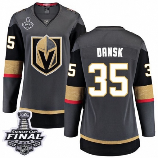 >Women's Vegas Golden Knights #35 Oscar Dansk Authentic Black Home Fanatics Branded Breakaway 2018 Stanley Cup Final NHL Jersey