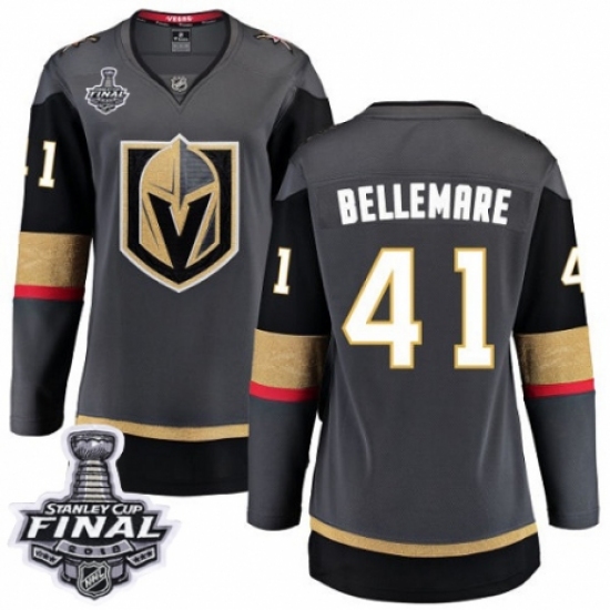 >Women's Vegas Golden Knights #41 Pierre-Edouard Bellemare Authentic Black Home Fanatics Branded Breakaway 2018 Stanley Cup Final NHL Jersey