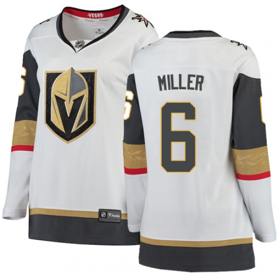 >Women's Vegas Golden Knights #6 Colin Miller Authentic White Away Fanatics Branded Breakaway NHL Jersey