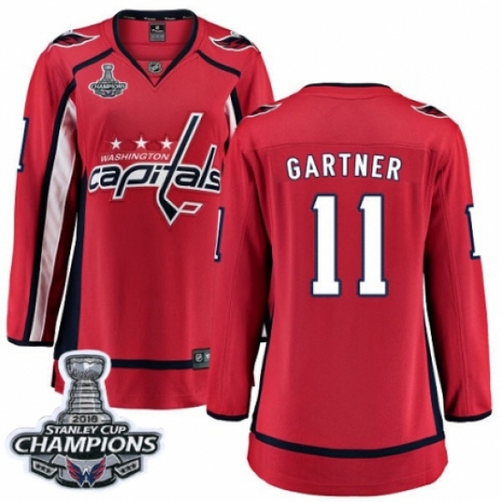 Women's Adidas Washington Capitals #11 Mike Gartner Authentic Red Home 2018 Stanley Cup Final Champions NHL Jersey