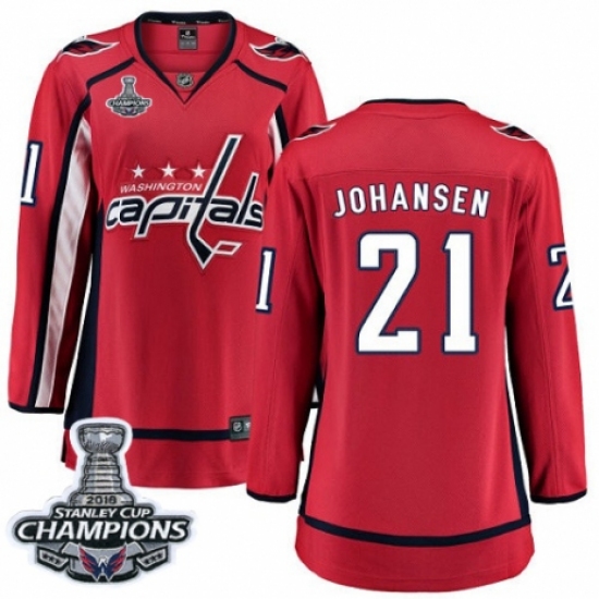 Women's Washington Capitals #21 Lucas Johansen Fanatics Branded Red Home Breakaway 2018 Stanley Cup Final Champions NHL Jersey