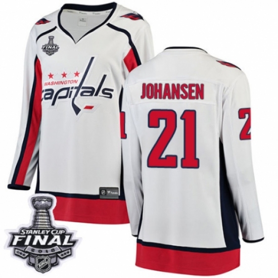 Women's Washington Capitals #21 Lucas Johansen Fanatics Branded White Away Breakaway 2018 Stanley Cup Final NHL Jersey