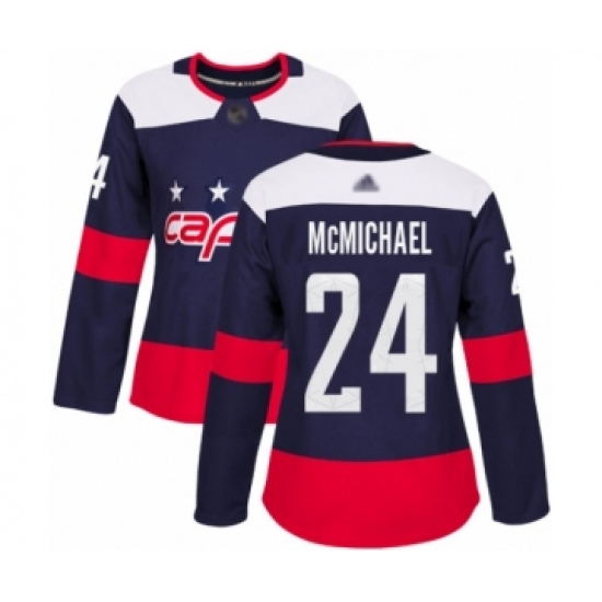 >Women's Washington Capitals #24 Connor McMichael Authentic Navy Blue 2018 Stadium Series Hockey Jersey