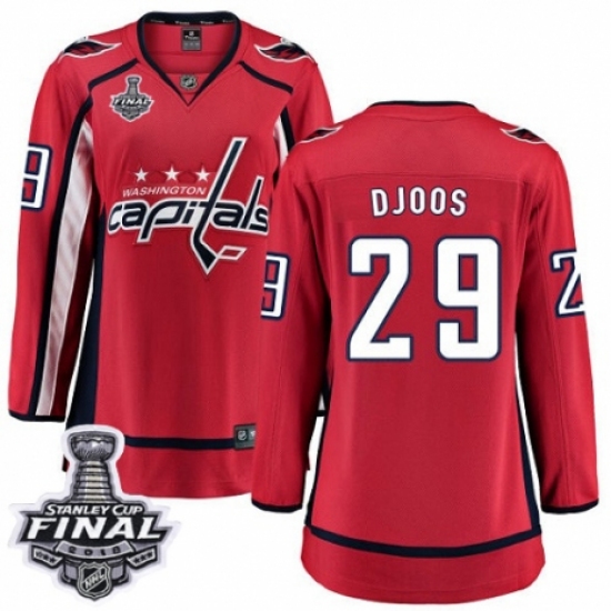 Women's Washington Capitals #29 Christian Djoos Fanatics Branded Red Home Breakaway 2018 Stanley Cup Final NHL Jersey