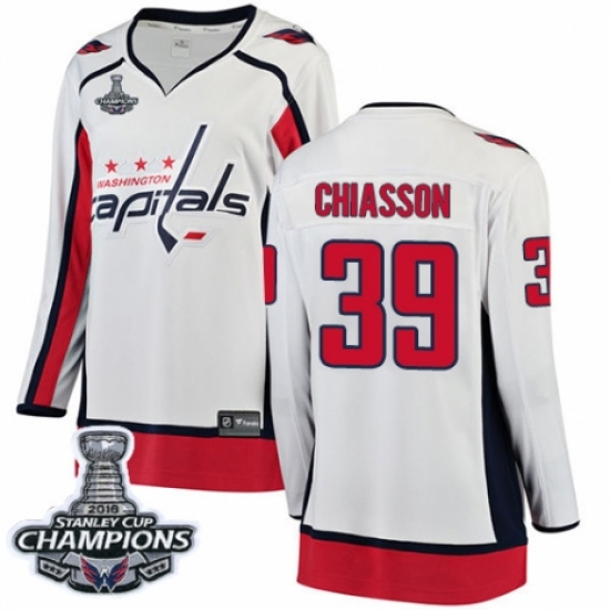 Women's Washington Capitals #39 Alex Chiasson Fanatics Branded White Away Breakaway 2018 Stanley Cup Final Champions NHL Jersey