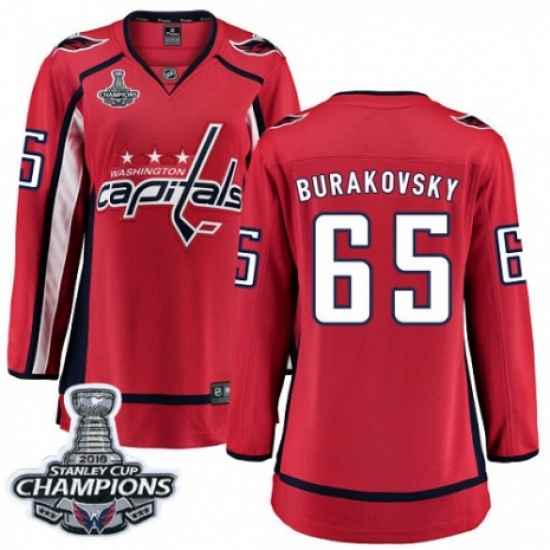 Women's Washington Capitals #65 Andre Burakovsky Fanatics Branded Red Home Breakaway 2018 Stanley Cup Final Champions NHL Jersey