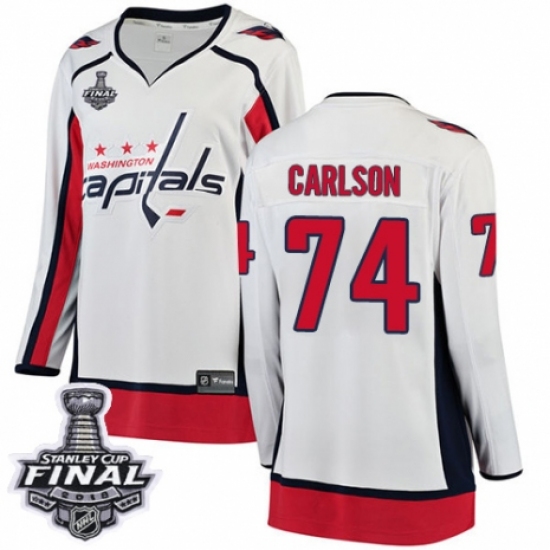 Women's Washington Capitals #74 John Carlson Fanatics Branded White Away Breakaway 2018 Stanley Cup Final NHL Jersey
