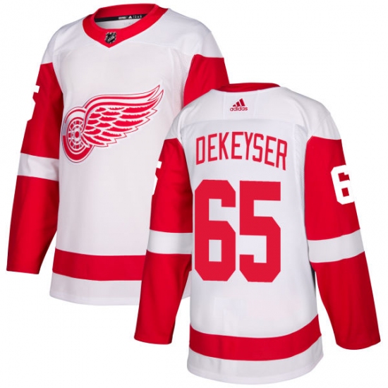 Home>NHL>Detroit Red Wings>Danny DeKeyser>Youth Adidas Detroit Red Wings #65 Danny DeKeyser Authentic White Away NHL Jersey