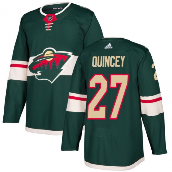 Home>NHL>Minnesota Wild>Kyle Quincey>Youth Adidas Minnesota Wild #27 Kyle Quincey Authentic Green Home NHL Jersey