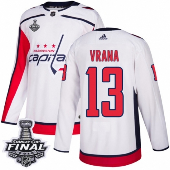 Youth Adidas Washington Capitals #13 Jakub Vrana Authentic White Away 2018 Stanley Cup Final NHL Jersey