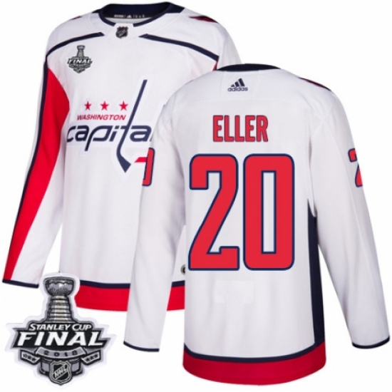>Youth Adidas Washington Capitals #20 Lars Eller Authentic White Away 2018 Stanley Cup Final NHL Jersey