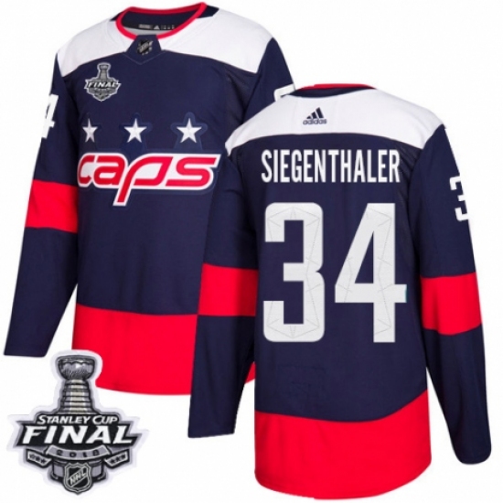 Women's Adidas Washington Capitals #34 Jonas Siegenthaler Authentic Navy Blue 2018 Stadium Series 2018 Stanley Cup Final NHL Jersey