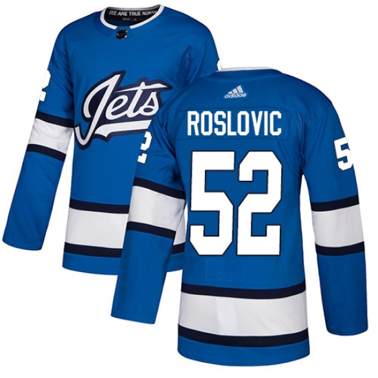 >Youth Adidas Winnipeg Jets #52 Jack Roslovic Authentic Blue Alternate NHL Jersey