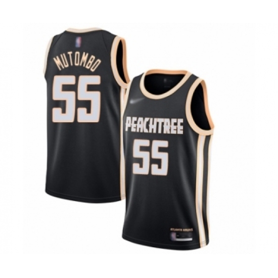 >Youth Atlanta Hawks #55 Dikembe Mutombo Swingman Black Basketball Jersey - 2019 20 City Edition