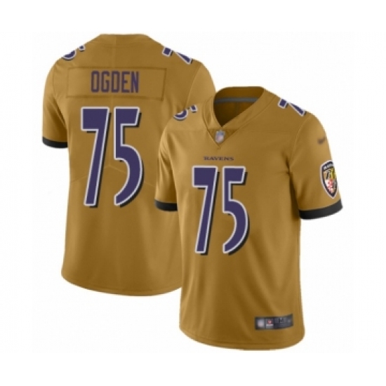 Men's Baltimore Ravens #75 Jonathan Ogden Limited Gold Inverted Legend 100th Season Football Jersey