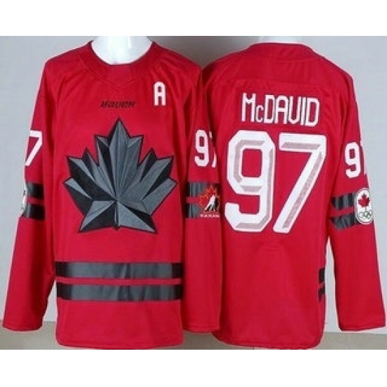 Men's Canada Hockey #97 Connor McDavid Red With A Stitched Jersey